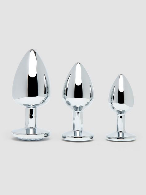 Upgrade your anal adventures with this sleek and stylish trio of aluminum butt plugs. Wonderfully smooth with dazzling jeweled bases, this set lets you start small and work your way up as you journey from anal-curious to anal aficionado.